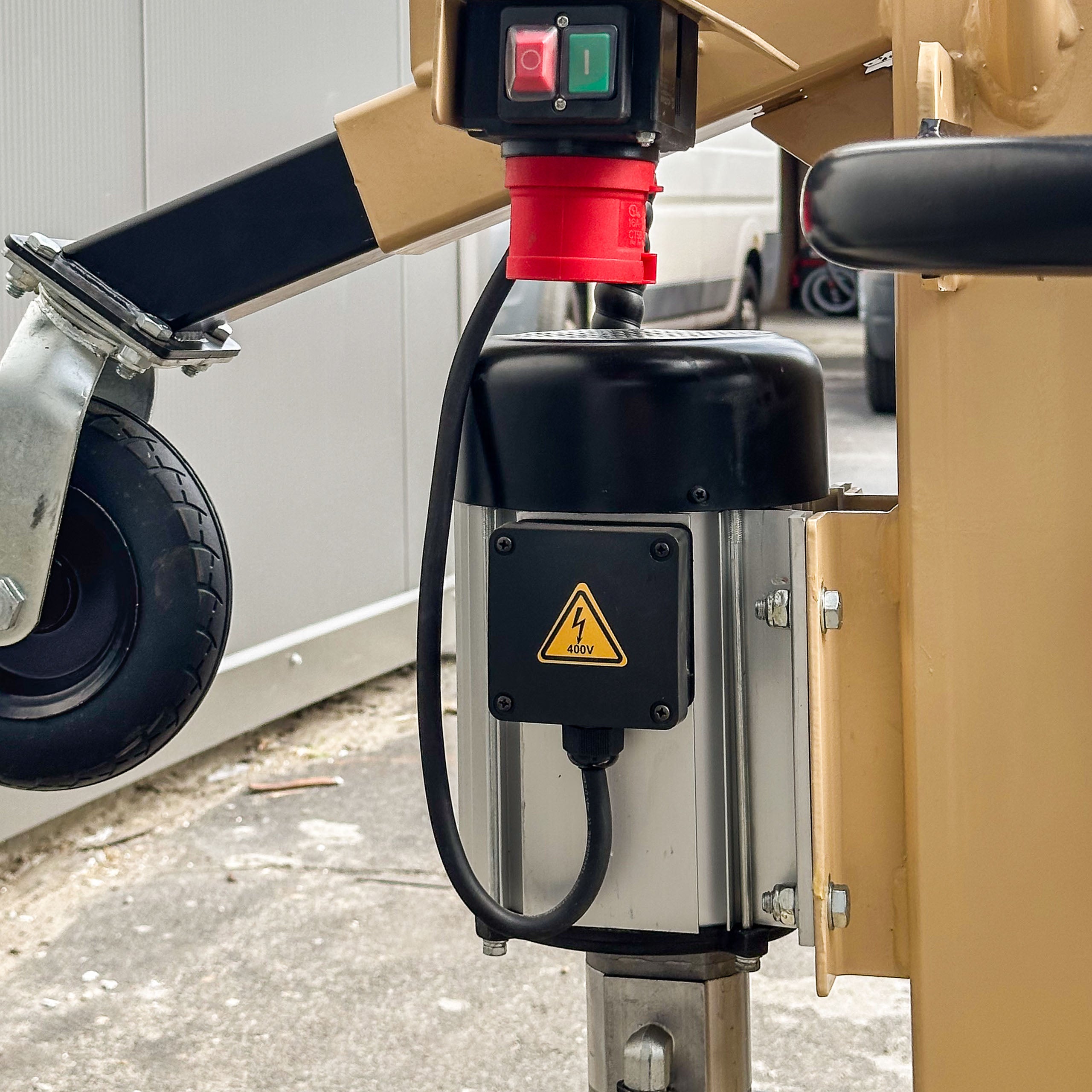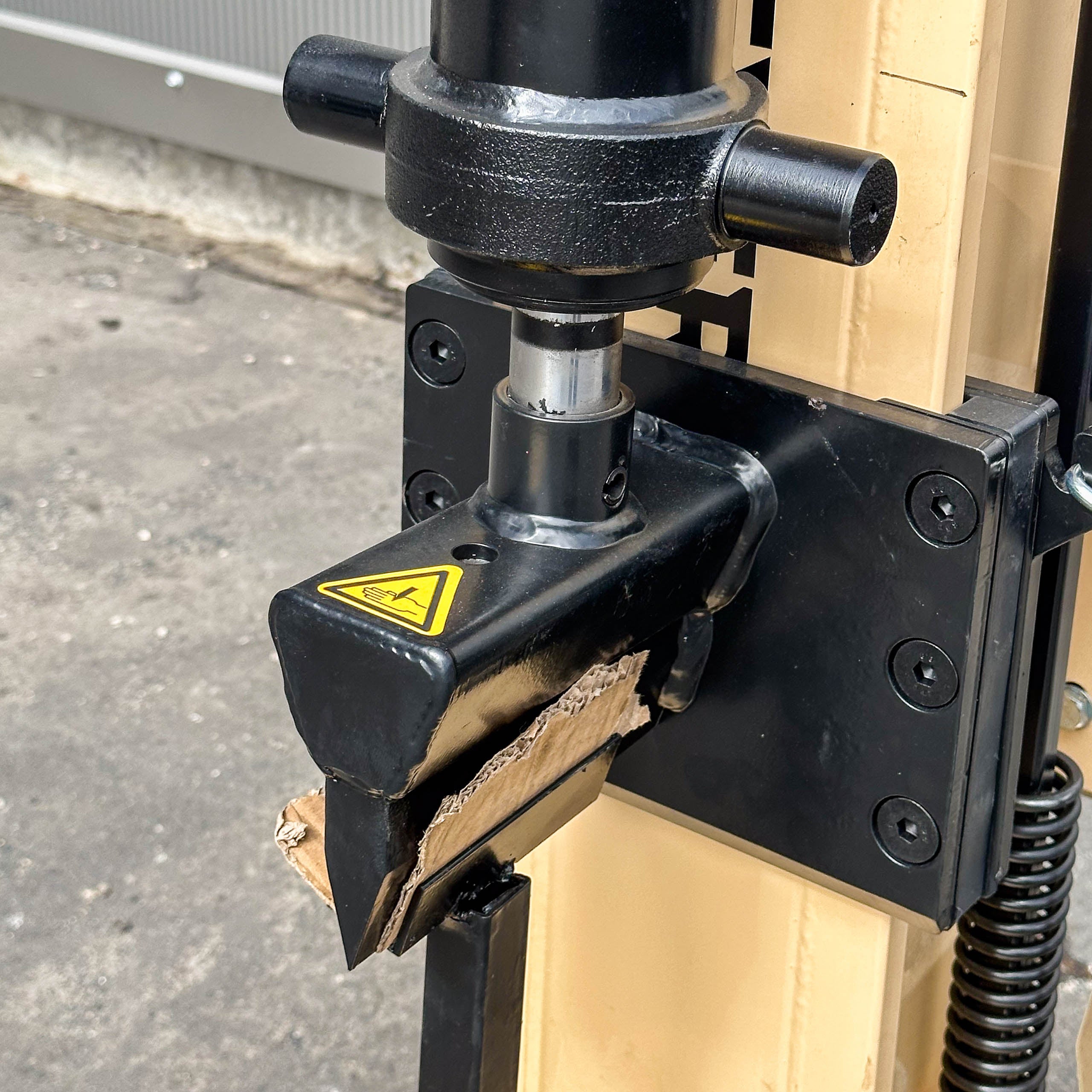 Łuparka napędzana jest silnikiem elektrycznym, trójfazowym o napięciu 400V oraz mocy 3500W. Te parametry pozwalają z łatwością generować siłę nacisku 14 ton.