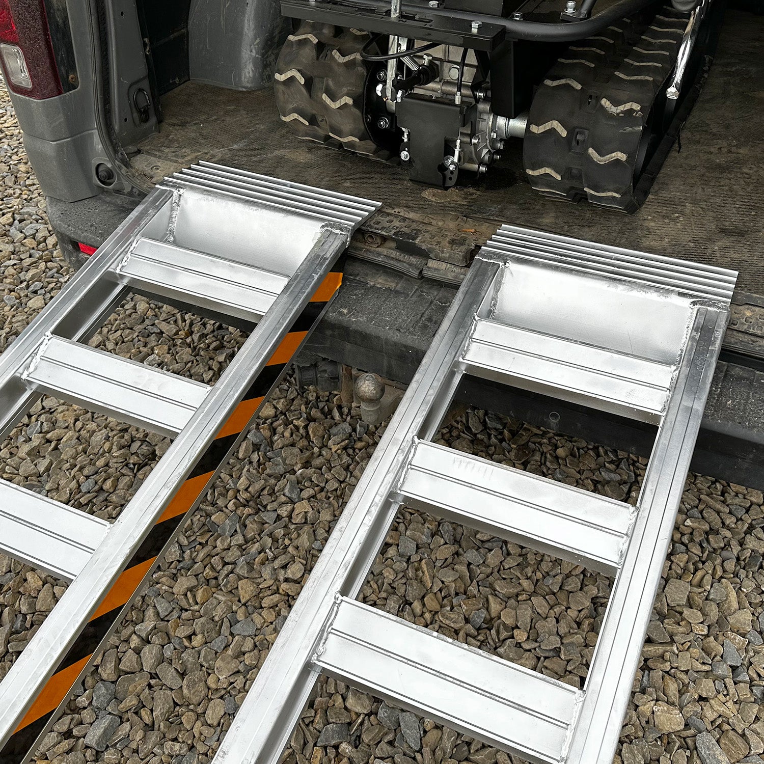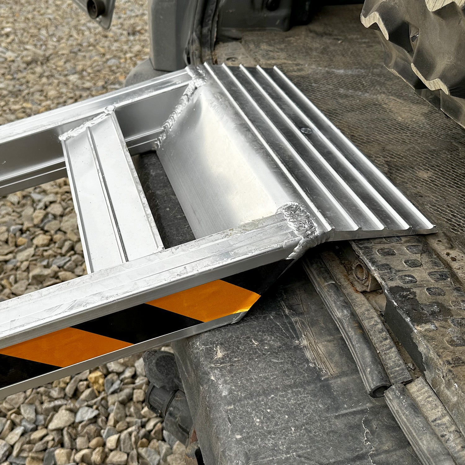 Najazdy aluminiowe przeznaczone do pojazdów poruszających się na gumowych gąsienicach lub gumowych kołach.