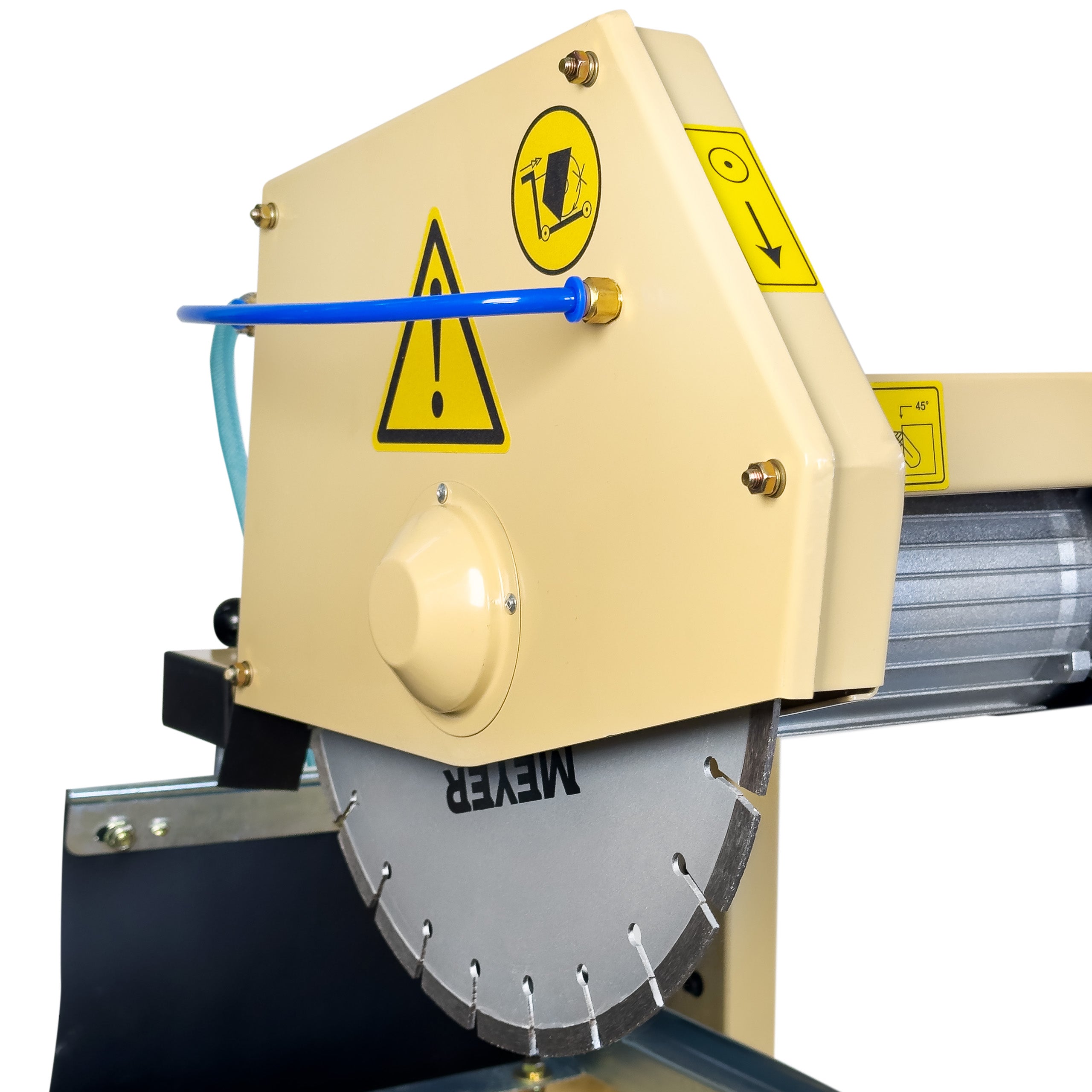 Aby zapobiec przegrzewaniu się tarczy i nadmiernemu pyleniu, przecinarka Meyer posiada zintegrowany system chłodzenia wodą z wydajną pompą. System ten skutecznie redukuje temperaturę tarczy podczas cięcia, co znacząco wydłuża jej żywotność i poprawia jakość wykonywanych cięć.